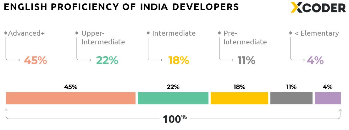 90% percent of India’s tech workers report having an intermediate or higher level of English proficiency.